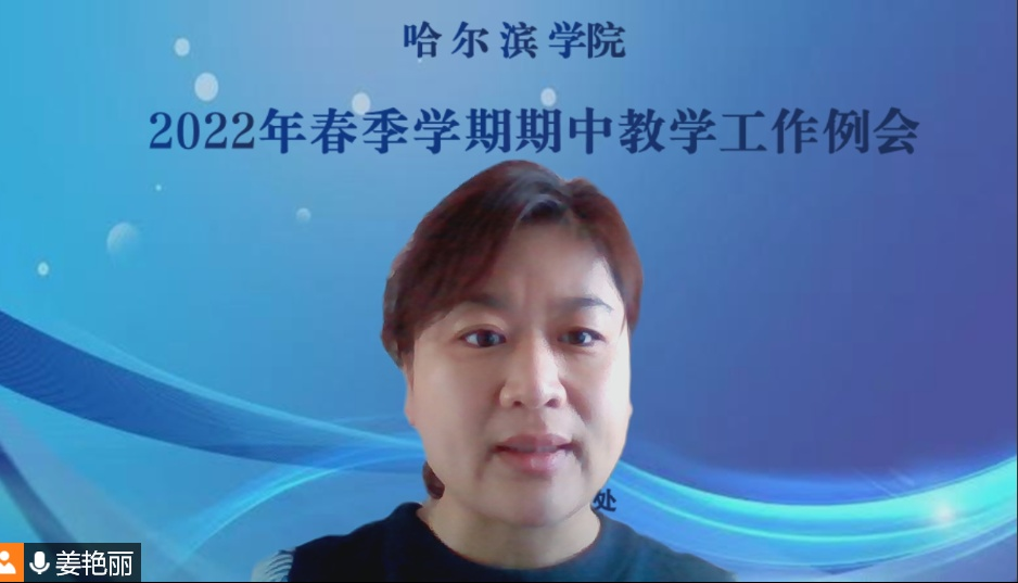 一是提高站位,扎实落实线上期中教学检查部署的各项任务。她指出,期中教学检查工作的核心任务是围绕线上教学的规范运行、线上教学改革和线上教学质量的提升开展。她强调,要深刻认识在线教学模式的现实需求与未来发展的双重意义,二级学院领导要积极带领教师不断更新教学理念,努力提升现代信息技术与教育教学深度融合的能力,加强线上教学研究,重构教学内容,创新教学设计和教学方式、方法,把线上教学作为推动教育教学领域的一场“课堂革命”、“学习革命”。二是提高认识,妥善做好师范生教育教学能力考核工作。她要求,全校师范类专业要把免试认定中小学教师资格教育教学能力考核工作作为学校深化教师教育改革、提高师范生人才培养质量的重要抓手,明晰各师范专业人才培养的核心专业胜任力,统筹专业发展规划,优化专业课程体系,强化专业教育实践实效,通过教师教育综合改革做出哈尔滨学院的特色和品牌,彰显哈尔滨学院师范生培养的成效。教务处要做好统筹调度,二级学院要压实工作责任,细化工作安排,组织好考核认定的各个环节,确保考核认定工作严格规范,顺利进行。三是提振精神,聚焦年度教学重点工作促进高质量发展。她强调,本年度教学工作要围绕聚焦应用型本科高校建设谋发展、聚焦硕士点申报获批抓重点和聚焦新一轮审核评估促内涵建设(三个“聚焦”)开展,不断促进教学工作从基础保障到高质量发展升级。