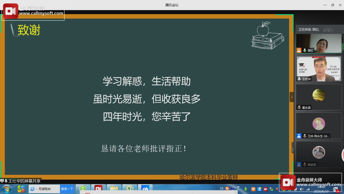 云端答辩,精彩无限。在疫情防控特殊形势下,2022届全体师生戮力同心、共克时艰,实现了毕业论文(设计)工作未拖延,毕业质量标准没降低。至此2022届本科教学最后一课完美收官。本科毕业不是终点,而是人生新的起点,祝愿2022届同学们在未来人生道路上,前程似锦,不负韶华。