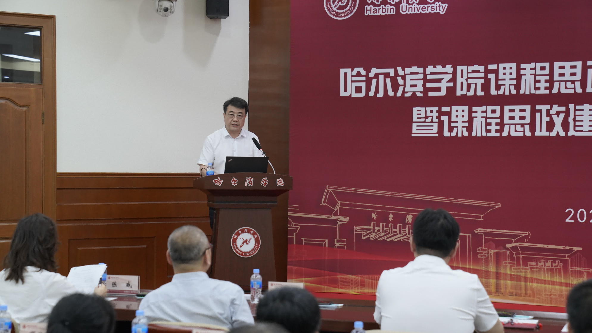 校长于成学代表学校党委致辞。他说,成立课程思政教学研究中心是学校落实立德树人根本任务,深入贯彻落实习近平总书记关于教育和高校思想政治工作重要论述,深入推进习近平新时代中国特色社会主义思想“三进”工作,深入推动思政课程与课程思政同向同行,构筑学校“大思政课”育人新格局的重要举措。他指出,哈院人要牢记“为党育人、为国育才”初心使命,切实将思想政治工作体系贯通育人和育才全过程,着力解决好专业教育和思政教育“两张皮”问题。他强调,一要强化领导,把牢课程思政“主引擎”;二要建好队伍,打造课程思政“主力军”;三要整合资源,抓住课程建设“主战场”;四要守正创新,夯实课堂教学“主渠道”。他表态,学校将按照跃然处长的讲话要求,积极参与省市课程思政改革,学习借鉴兄弟高校的好经验、好做法,探索构建制度、培训、内容、方法、保障“五位一体”的课程思政建设新格局,以实际行动推动学校思想政治工作迈上新台阶。