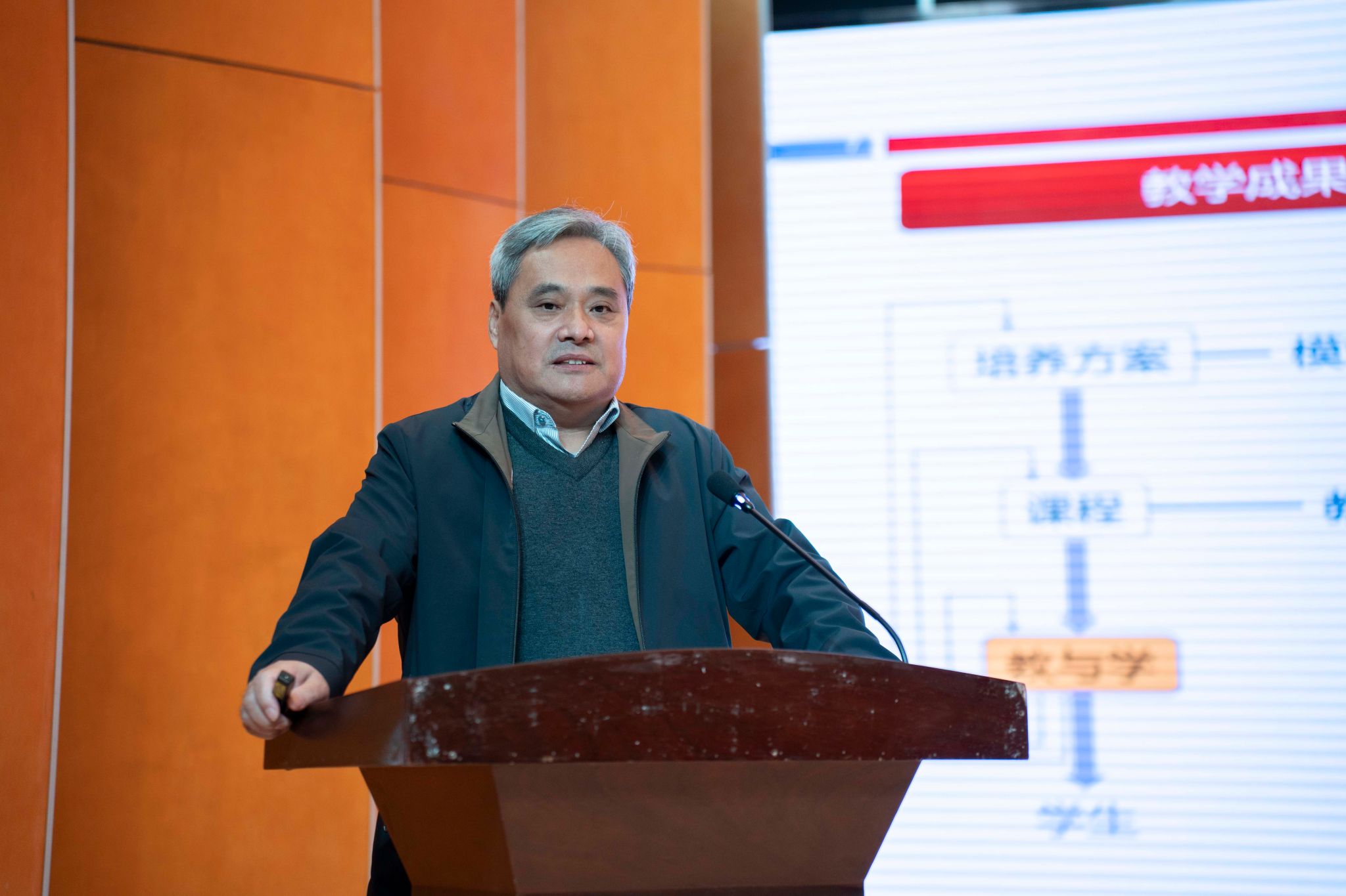 活动首先请哈尔滨工业大学战德臣教授作《教学成果奖的培育与申报》主旨报告。战教授从教学成果的理解,教学成果的梳理、提炼与提升,教学成果奖申报书的撰写与佐证材料准备等方面对教学成果奖做了详细解读与指导。他的讲解既有国家层面的评审文件的解读,又有来自自身申报经验的理论提升;既有鲜活的文字材料,又有直观的图片佐证。