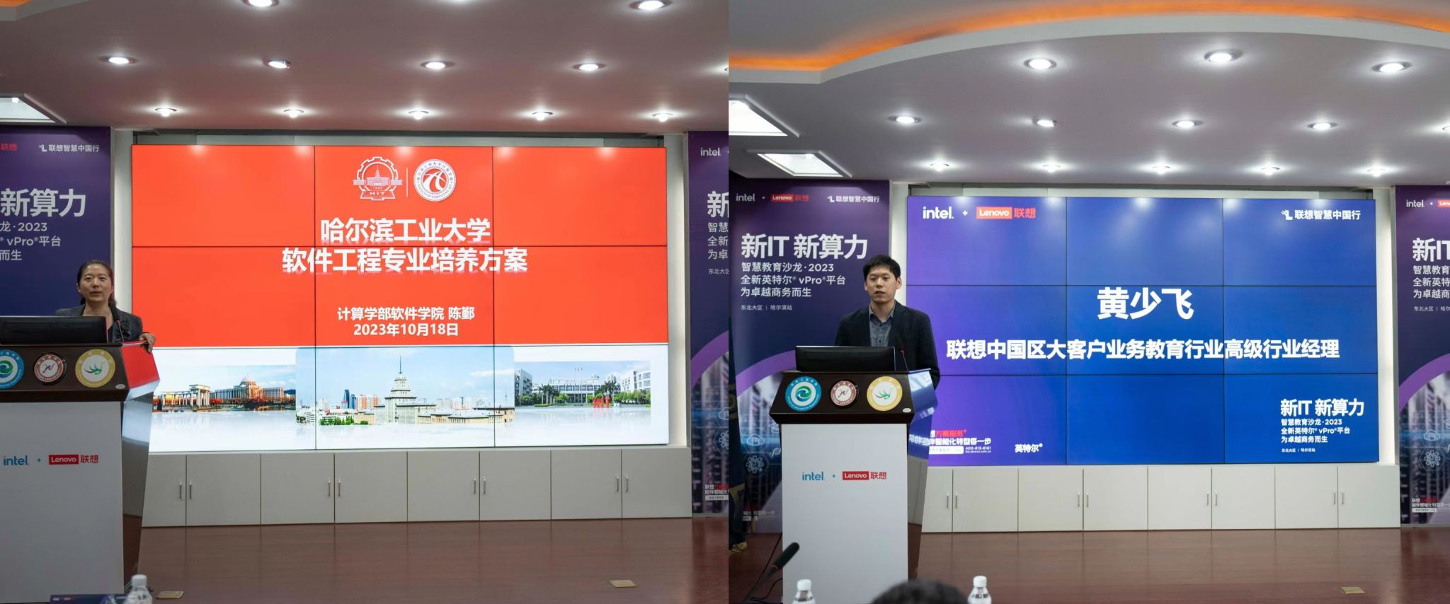 活动的第二阶段,参会专家和教师移至哈尔滨学院主校区2号楼2418会议室。活动请联想集团教育纵队高级行业经理黄少飞作《联想高校业务全景及高性能计算》专题报告,并请教育部软件工程专业虚拟教研室秘书长、哈尔滨工业大学陈鄞副教授针对软件工程专业人才培养进行专题报告。报告得到了哈尔滨学院信工学院参会老师的热烈讨论和与讲座人的积极互动问答。