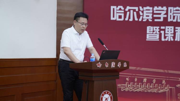 校长于成学代表学校党委致辞。他说,成立课程思政教学研究中心是学校落实立德树人根本任务,深入贯彻落实习近平总书记关于教育和高校思想政治工作重要论述,深入推进习近平新时代中国特色社会主义思想“三进”工作,深入推动思政课程与课程思政同向同行,构筑学校“大思政课”育人新格局的重要举措。他指出,哈院人要牢记“为党育人、为国育才”初心使命,切实将思想政治工作体系贯通育人和育才全过程,着力解决好专业教育和思政教育“两张皮”问题。他强调,一要强化领导,把牢课程思政“主引擎”;二要建好队伍,打造课程思政“主力军”;三要整合资源,抓住课程建设“主战场”;四要守正创新,夯实课堂教学“主渠道”。他表态,学校将按照跃然处长的讲话要求,积极参与省市课程思政改革,学习借鉴兄弟高校的好经验、好做法,探索构建制度、培训、内容、方法、保障“五位一体”的课程思政建设新格局,以实际行动推动学校思想政治工作迈上新台阶。