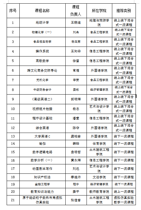 根据我校《关于开展2023年校级一流本科课程评选暨第三批黑龙江省级一流本科课程评选推荐工作的通知》文件的要求,经学院推荐、学校组织评审,评选出2023年校级一流课程36门,第三批黑龙江省级一流本科课程评选推荐课程21门。现将具体名单公示如下表,认定为校级一流课程须继续建设五年,且定期更新资源和数据。学校对课程实际应用、教学效果和共享等进行跟踪监测与动态管理。学校将对不符合要求的课程实施退出机制,对于未持续更新完善、出现严重质量问题、课程团队成员出现师德师风等问题的课程,将予以撤销。