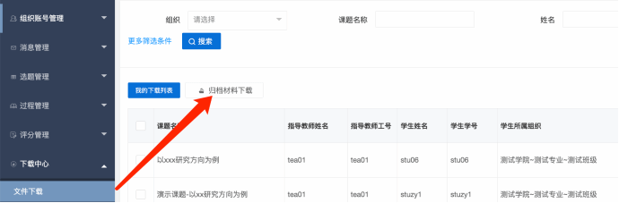 5.论文及查重报告下载方式:点击系统左侧-下载中心-归档材料下载进行操作