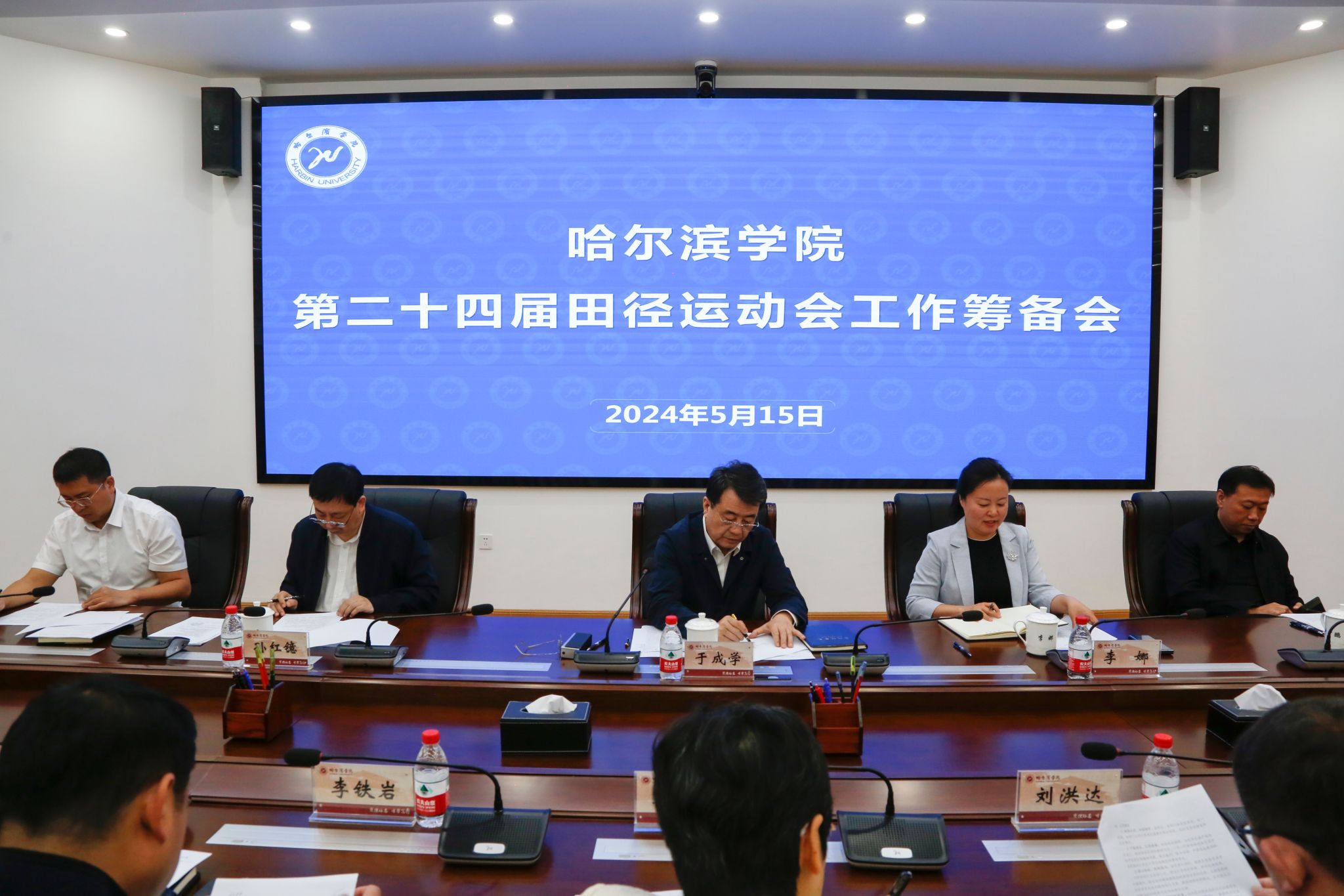 (文/毕甜甜)为保证学校第二十四届田径运动会顺利召开,5月15日上午,哈尔滨学院第二十四届田径运动会工作筹备会在党政办公楼404会议室召开。校领导班子成员出席会议,各单位(部门)负责人、各学院党政负责人、体育学院领导班子全体成员参加会议。校长、党委副书记于成学主持会议并讲话。
