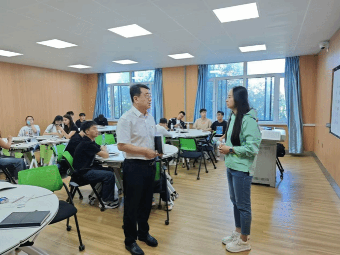 9月2日,是我校秋季学期开课第一天,为了解新学期教学运行情况,校长、党委副书记于成学带领党政办公室、教务处等相关部门人员,深入教学一线检查课堂教学情况。检查期间,于成学走进教室与学生一同听了“开学第一课”,在课间休息时,他对授课老师的教学准备、教学态度、教学环节设计等方面给予了充分肯定,并就创新教学方法,深化教学研究、推动课堂教学改革等与老师进行了探讨交流。