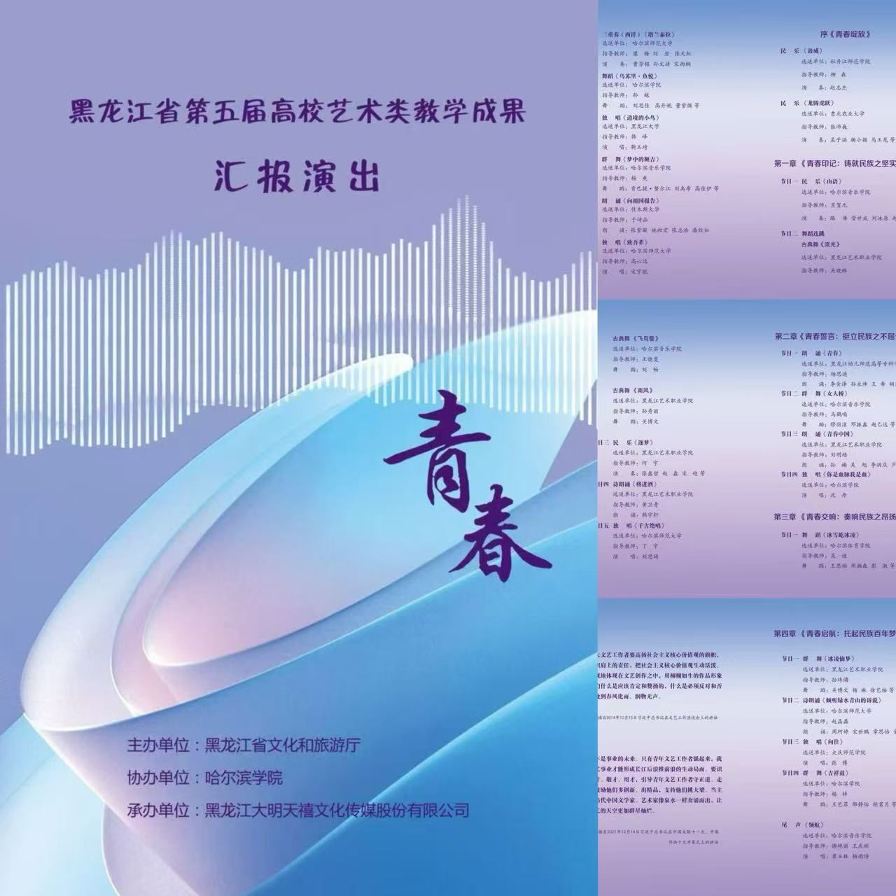 该活动自今年4月15日启动以来,收到了哈尔滨师范大学、哈尔滨音乐学院、哈尔滨学院、黑龙江大学、齐齐哈尔大学、大庆师范学院、牡丹江师范学院等40多所高校报送的美术、书法、设计、声乐、器乐、舞蹈、播音主持等9大专业2114件艺术作品。10月16、17日在我校丁香剧场与音乐厅对入围的352项展演类作品(声乐、器乐、舞蹈、播音主持)开展复评工作,并于10月21日进行展演综合汇报演出。 本次展演活动汇聚了省内众多高校的优秀艺术作品,汇报演出以《青春印记:铸就民族之坚实底气》《青春誓言:挺立民族之不屈骨气》《青春交响:奏响民族之昂扬志气》《青春启航:托起民族百年梦华章》四篇章节目的精彩演绎充分展现了黑龙江省高校艺术教育的丰硕成果。活动现场,观众们沉浸在艺术的氛围中,感受到了创作者们的激情与才华。各类艺术形式交相辉映,充分体现了高校师生的创新精神和艺术创造力。