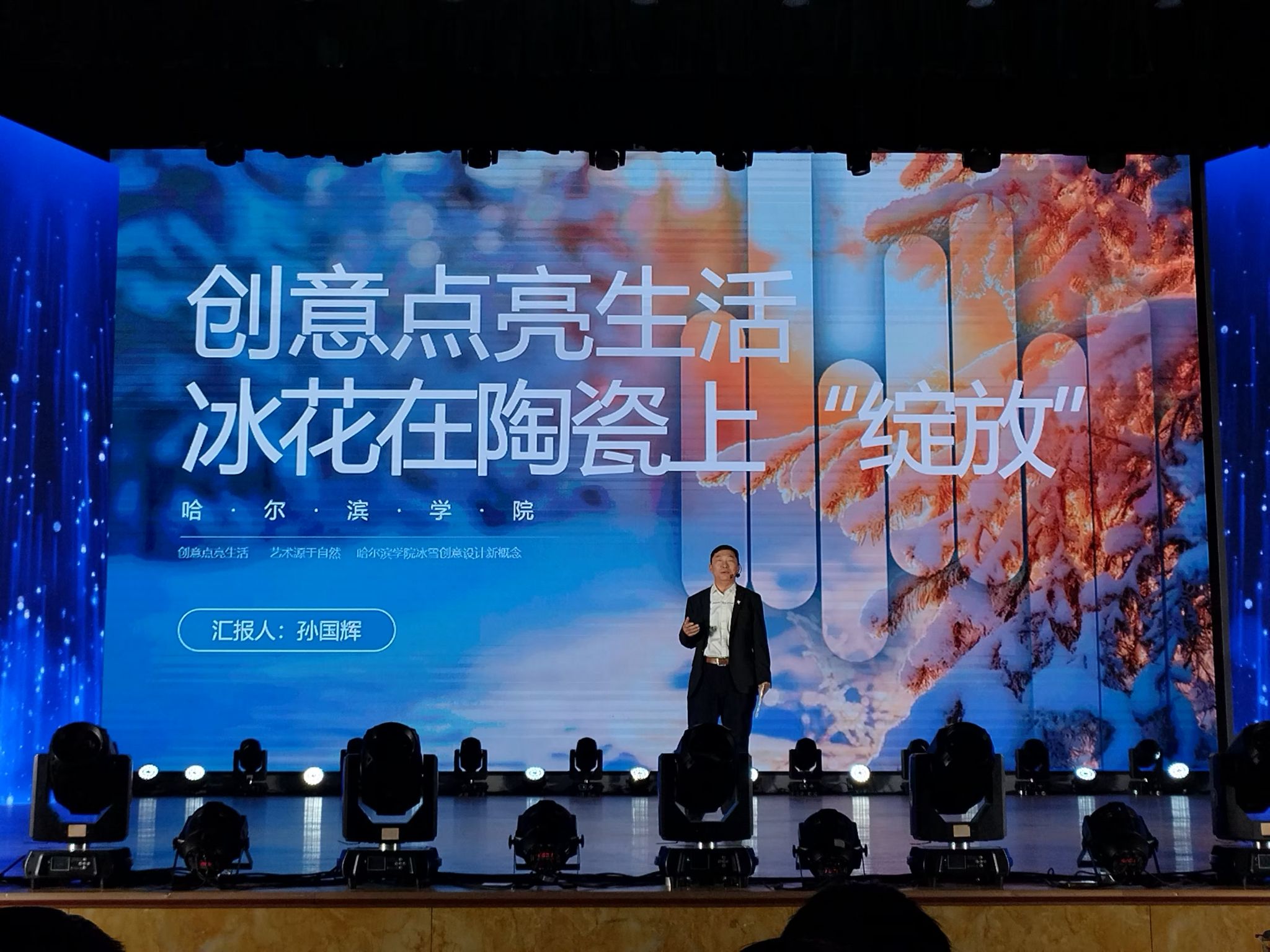 艺术与设计学院党委书记孙国辉代表我校在铸“魂”篇章中进行情景讲述——“创意点亮生活,冰花在陶瓷上绽放”,突出新文科建设深度赋能创意设计产业发展,展示我校新文科建设特色及取得的成效,受到省厅及新文科教育联盟成员单位的好评。