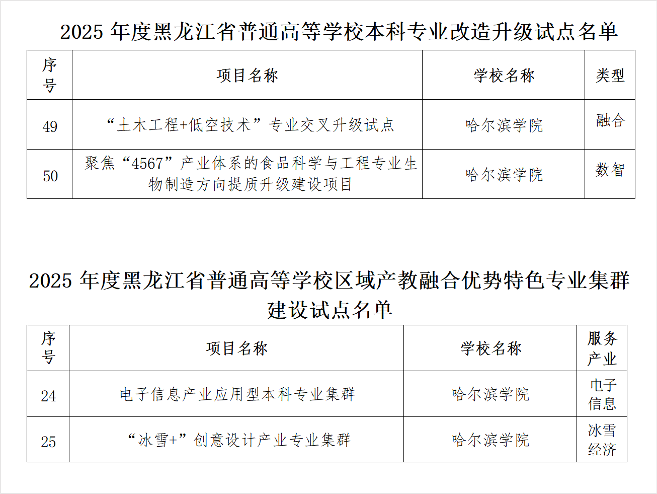 近日,黑龙江省教育厅公布全省高等教育综合改革首批试点项目名单,我校多个项目成功入选本科专业结构优化与动态调整、区域产教融合优势特色专业集群建设两大试点类别。
