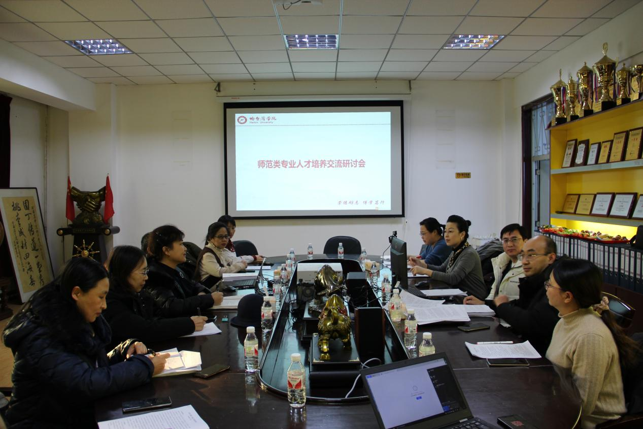 1月21日下午,学校在2号教学楼417室举行师范类专业人才培养交流研讨会。教务处处长姜艳丽出席并主持会议,信息工程学院王知非副院长、音乐与舞蹈学院沈丹副院长、教育科学学院刘亨荣副院长、教务处郭海龙副处长及教务处相关人员、师范类专业负责人和承担师范类专业通识课程教学的相关负责人参加了交流研讨会。