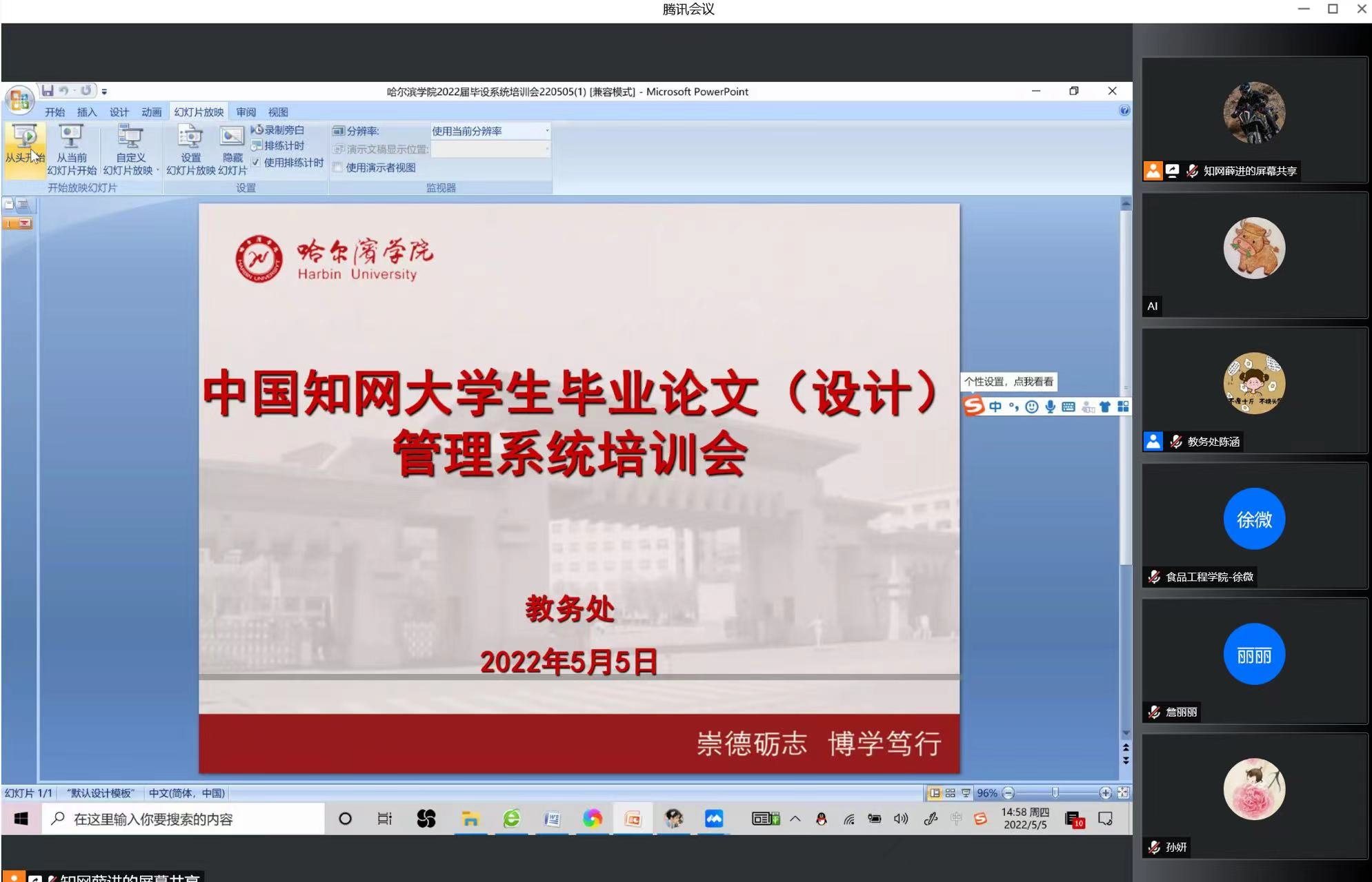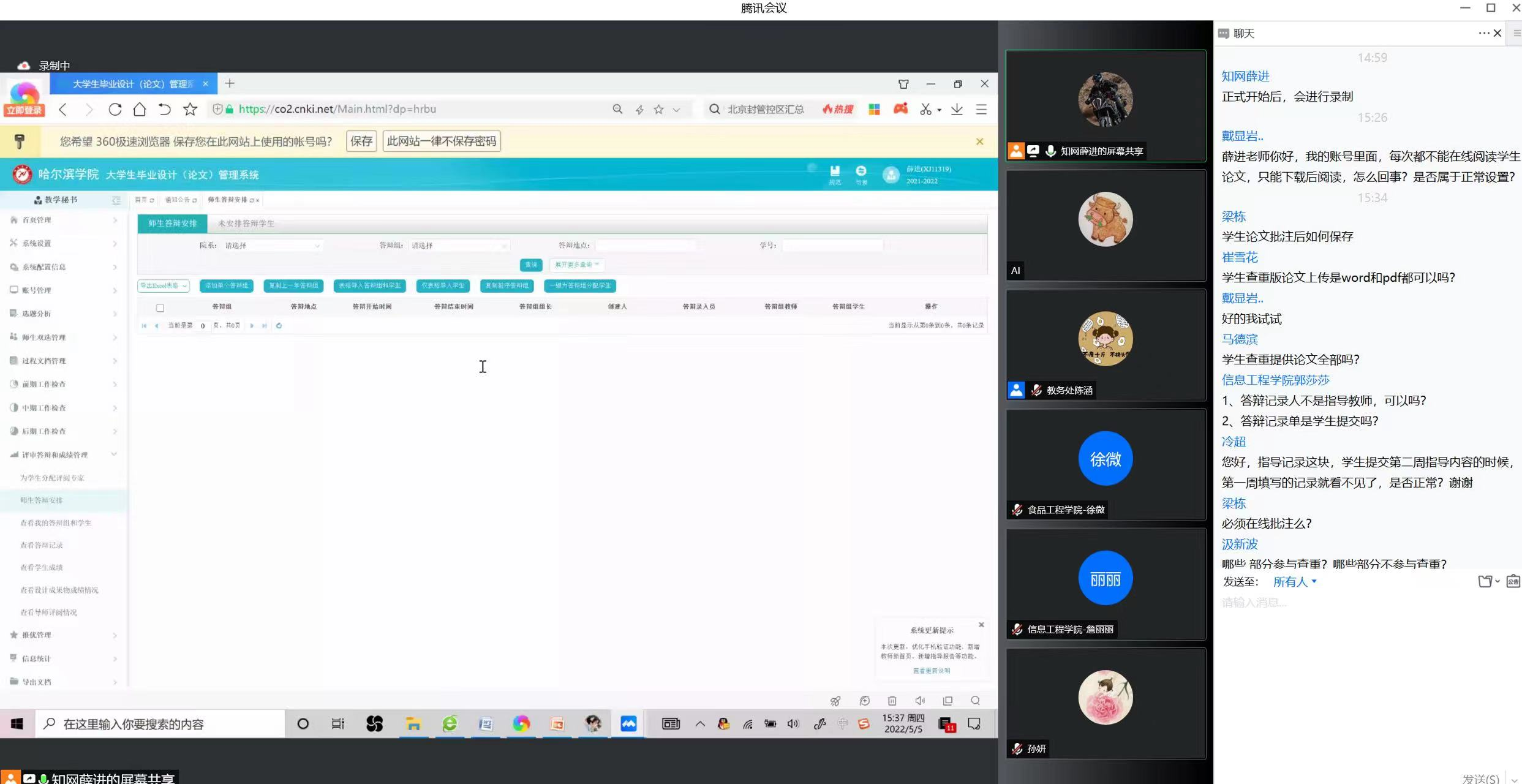 (文陈涵)为进一步规范我校毕业论文(设计)管理工作流程,及时解决“毕设系统”使用过程中遇到的技术问题,确保高质量如期完成2022届本科毕业论文(设计)工作,5月5日下午,教务处组织召开“中国知网毕业论文(设计)管理系统”第二期培训会,各学院教学秘书、指导教师等200余人参加了本次培训会。会议采取线上形式召开。