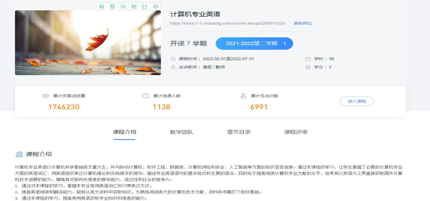了解计算机知识相关的英语表达,熟悉该领域的专业术语,掌握一些专业英语的阅读、翻译方法和技巧,提高学生在计算机相关英语材料方面的听说和写作能力,培养学生使用英语获取专业技术知识的能力和一定的英语思维能力,为学生学习、理解和使用计算机技术提供更多途径,扩展国际视野。