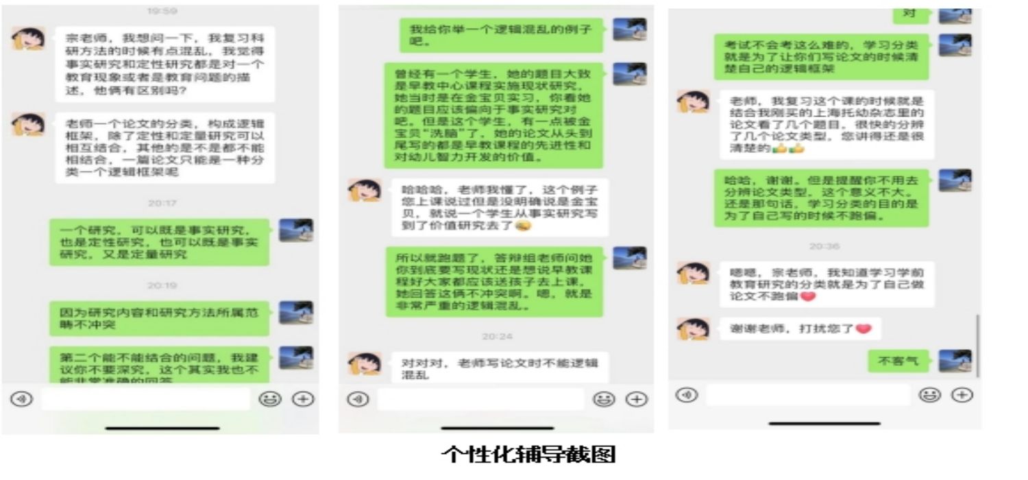 由于疫情的原因开始网络授课,宗勤瑶老师马上改变了原本的授课计划方案,重新以《学前教育研究方法》之前的网络授课经验为基础,总结17、18级学前专业学生学习本门课程时的实际需求,以及对课程知识点掌握方面存在的不足,并在调查19级学前专业学生实际需求基础上,重新建构自己的课程模式和内容,确保学生能够通过新的授课形式听懂、理解、掌握、运用每个知识点,使自己的课能落到实处,真正发展学生的教育研究能力,为今后的论文写作和教学研究打下一定的基础。