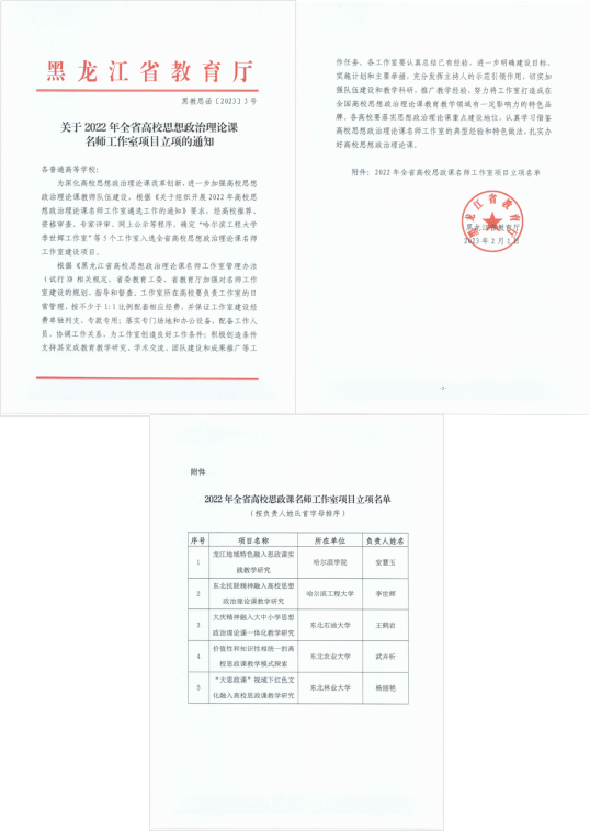 (文/马彦龙)近日,黑龙江省教育厅发布了《关于2022年全省高校思想政治理论课名师工作室项目立项的通知》,我校马克思主义学院安慧玉教授负责的“龙江地域特色融入思政课实践教学研究”工作室成功入选2022年黑龙江省高校思政课名师工作室建设项目。