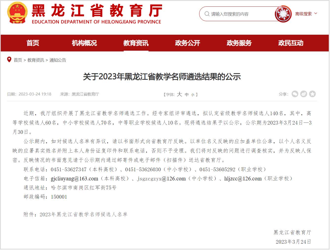 (文/马彦龙)近日,黑龙江省教育厅发布了《关于2023年黑龙江省教学名师遴选结果的公示》,我校安慧玉教授被认定为2023年黑龙江省教学名师。