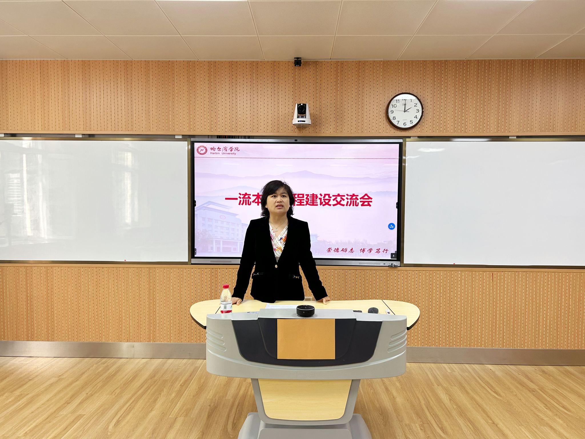 姜艳丽处长做总结发言,她对两位老师的精彩分享表示由衷感谢,同时给予与会教师三点建议:一是提前谋划,组建团队。充分领会文件精神,做好顶层设计,研读评审指标要点,理清思路。二是全心投入,注重积累。用心、用情、用脑投入教学过程,激发学生兴趣,不断深化课程改革创新。三是精心凝练,突出特色。用心雕琢完善材料,发掘课程特色与亮点,用数字化、信息化赋能课程。学校将持续开展相关培训,为不断提高学校应用型人才培养质量奠定扎实的基础。