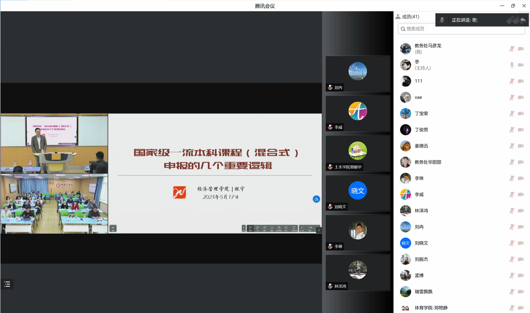 姜艳丽处长介绍了我校一流本科课程建设的发展历程、取得的成效及此次交流会的目的意义。信息工程学院王克朝教授以《一流课程申报与建设分享》为题,以《编译原理》课程为例,从申报文件要求、评审指标体系、申报书的撰写等方面进行深入讲解与分享。经济管理学院程宇副教授以《国家级一流本科课程(混合式)申报的几个重要逻辑》为题,从立足应用型办学定位、课程的持续建设与迭代、问题导向贯穿整个申报材料、站在专家的视角审视材料等角度分享了自己的经验。分享结束后,与会教师们展开深入热烈的交流讨论。