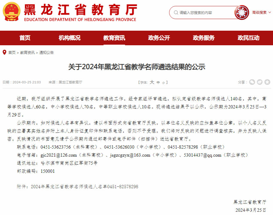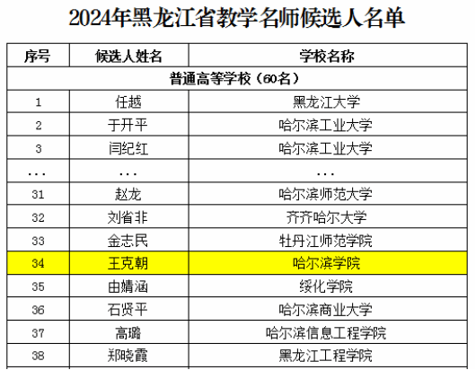 近日,黑龙江省教育厅发布了《关于2024年黑龙江省教学名师遴选结果的公示》,我校王克朝教授荣获2024年黑龙江省高等学校教学名师称号。