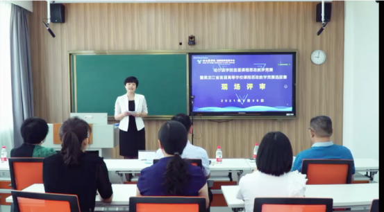 为深化我校教育教学改革,鼓励广大教师积极开展课程思政建设,为省赛选拔推荐优秀参赛教师,根据《黑龙江省教育厅关于举办全省首届高等学校课程思政教学竞赛的通知》文件要求及《哈尔滨学院首届课程思政教学竞赛暨黑龙江省首届高等学校课程思政教学竞赛选拔赛实施方案》工作安排,在学校领导的大力支持与指导下,由教师教学发展中心主办、各二级学院协办的“哈尔滨学院首届课程思政教学竞赛暨黑龙江省首届高等学校课程思政教学竞赛选拔赛”(以下简称“大赛”) 于5月12日正式启动。各二级学院陆续组织开展了课程思政教学竞赛初赛及校赛选手遴选推荐工作。6月25日,大赛决赛的现场评审在教师教学发展中心“敬学多功能室”举行,经由初赛推选的9位教师同台竞技、展现风采,部分教师代表现场观摩。比赛由教师教学发展中心副主任宋阔主持,超星平台对全程进行网络直播。