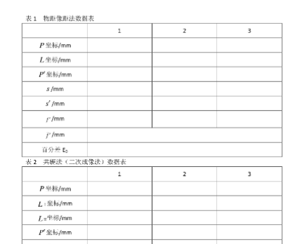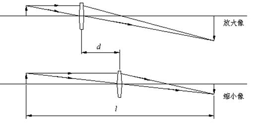 (2)用贝塞耳法(两次成像法)测薄凸透镜焦距